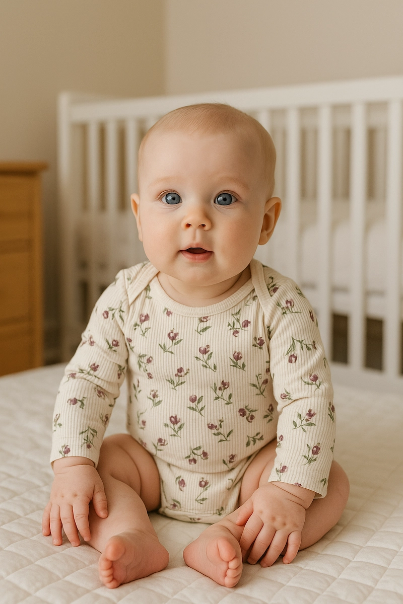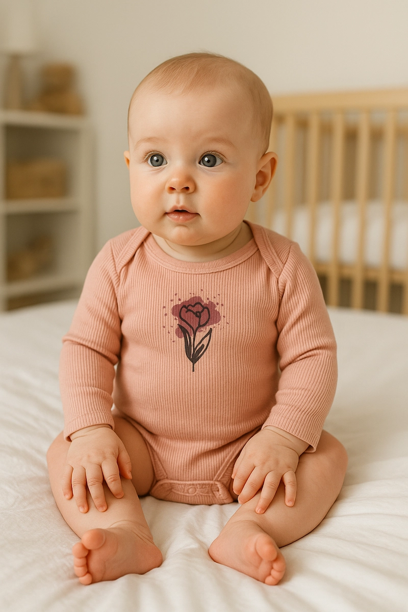 Μακρυμάνικα κορμάκια με μοτίβο από εξαιρετικά απαλό βαμβακερό ζέρσεϊ με λαιμόκοψη-φάκελο και σούστες στον καβάλο.
