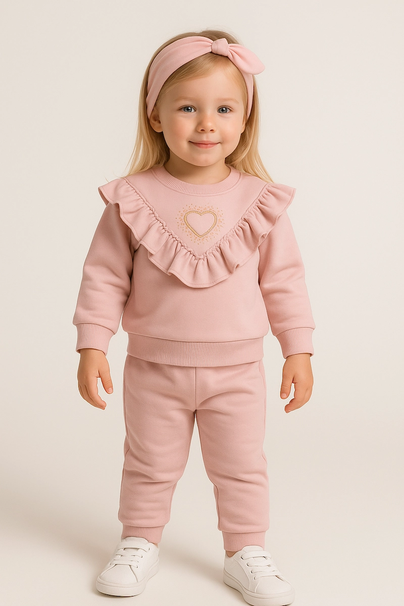 Βρεφικό σετ φόρμας μονόχρωμο με βόλαν και καρδιά